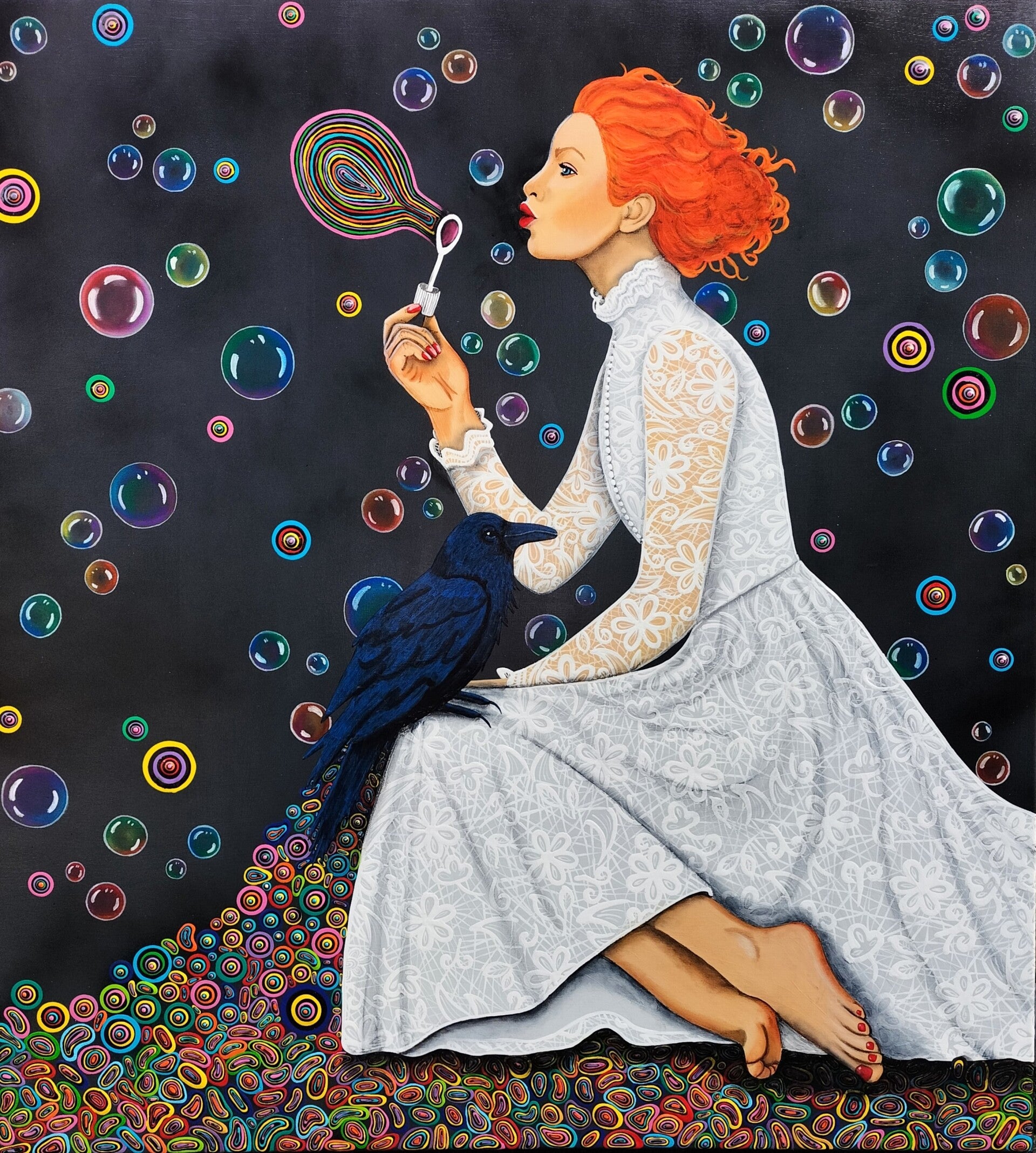 Ze blaast haar dromen de wereld in — licht, speels en vol kleur.