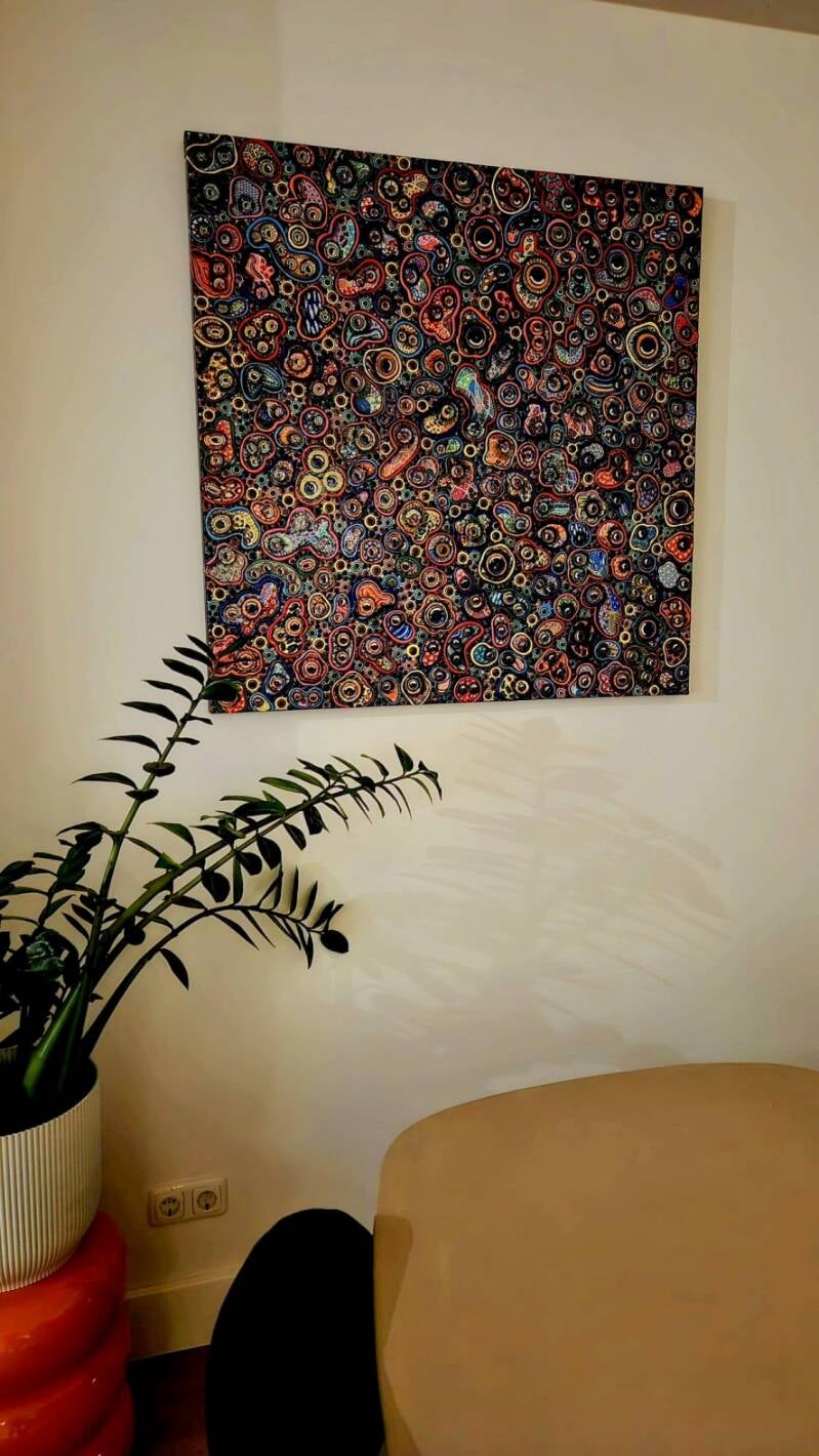 Gisteren het schilderij "Do you feel watched" opgehaald en vandaag opgehangen in de keuken. We zijn er super blij mee! Ook is José ontzettend aardig en komt ze haar afspraken na.